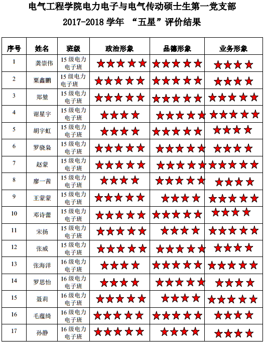 中共黄色动漫 电力电子与电气传动硕士生二支部委员会2017-2018学年 “五星”评价结果