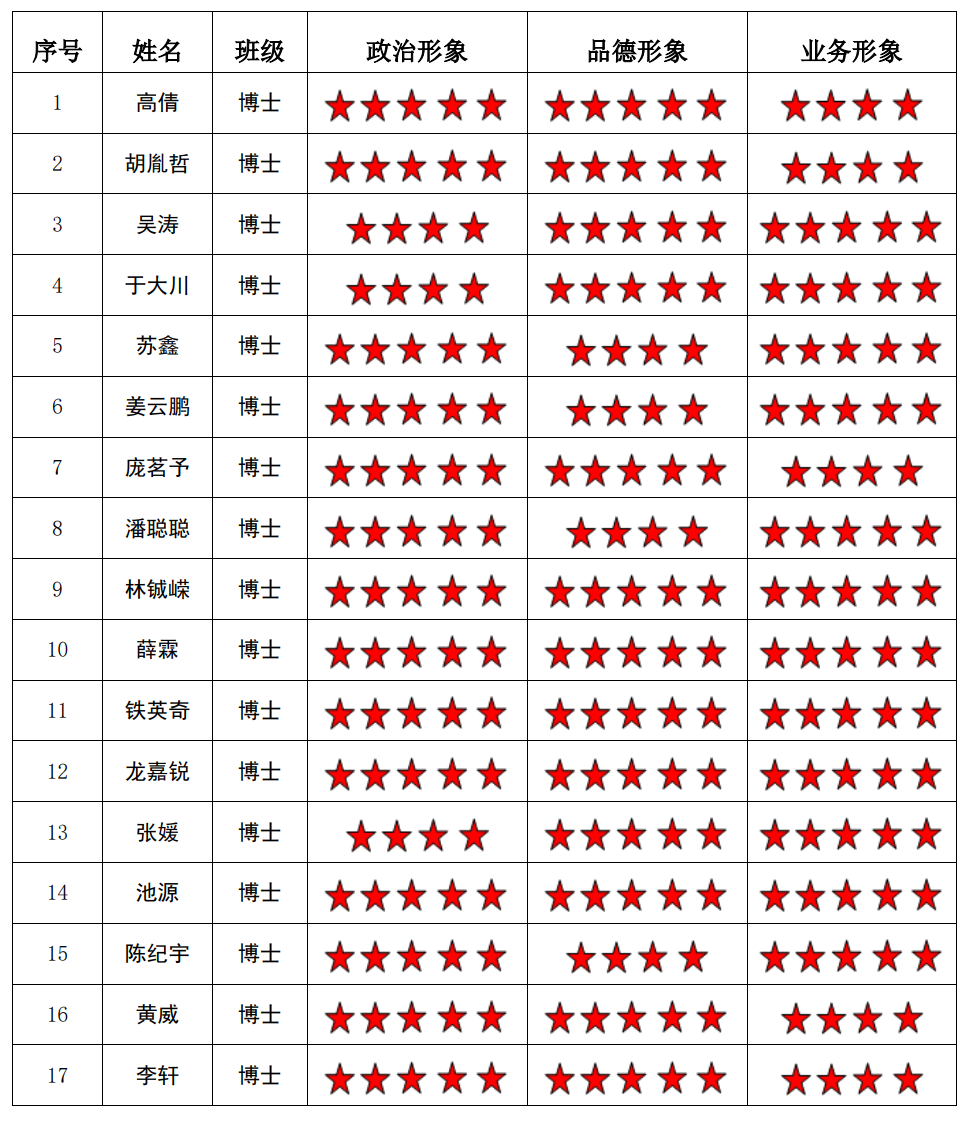 黄色动漫 博士生二支部 2022-2023学年第二学期“五星”评价结果
