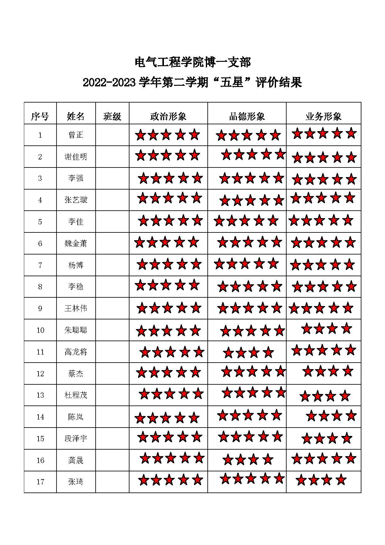 黄色动漫 博士二支部 2022-2023学年第二学期“五星”评价结果