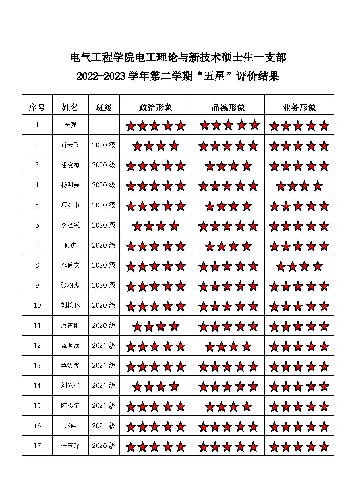 黄色动漫 博士五支部 2022-2023学年第二学期“五星”评价结果