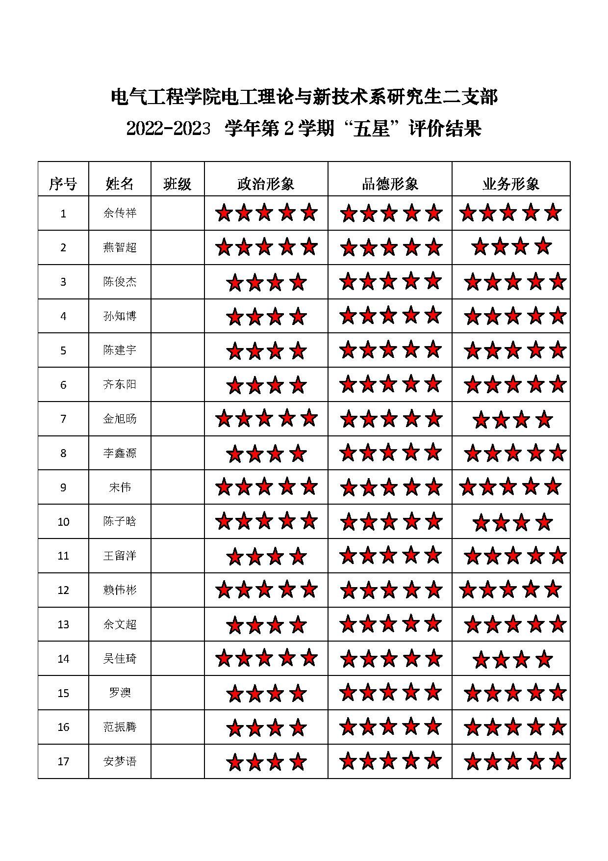黄色动漫 电工一支部 2022-2023学年第二学期“五星”评价结果