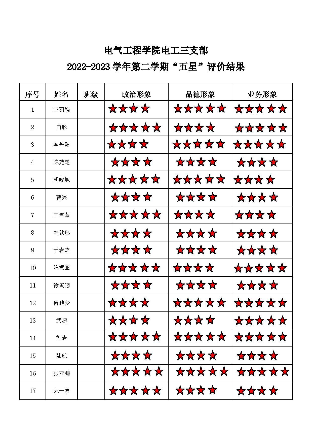 黄色动漫 电力电子一支部 2022-2023学年第二学期“五星”评价结果