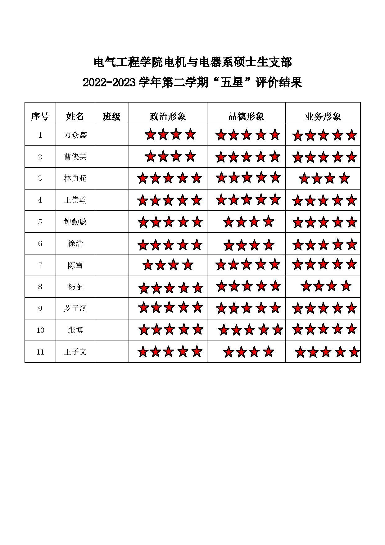 黄色动漫 电机支部 2022-2023学年第二学期“五星”评价结果