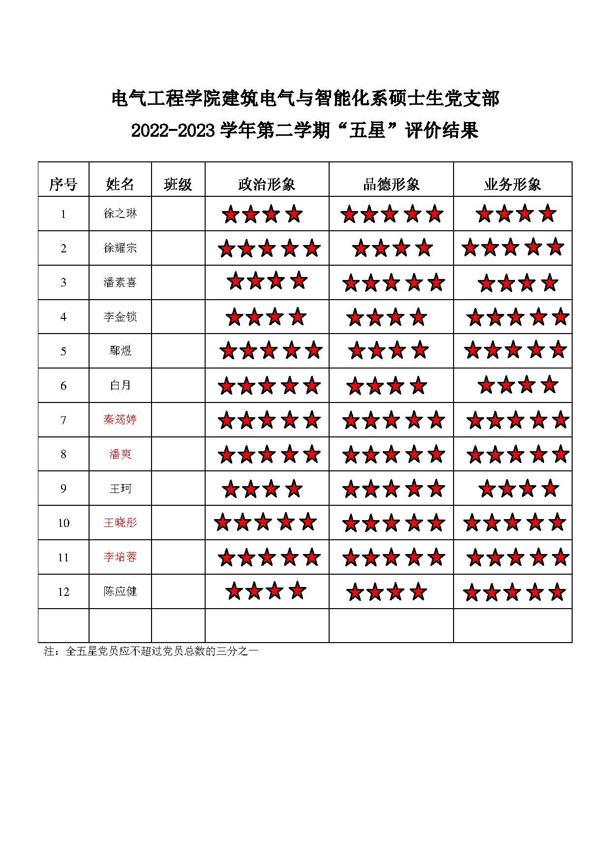 黄色动漫 建筑电气支部 2022-2023学年第二学期“五星”评价结果