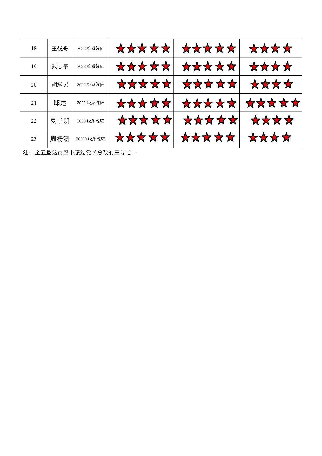 黄色动漫 系统二支部 2022-2023学年第二学期“五星”评价结果