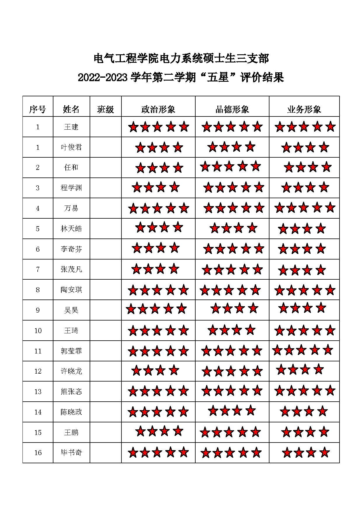 黄色动漫 高压一支部 2022-2023学年第二学期“五星”评价结果