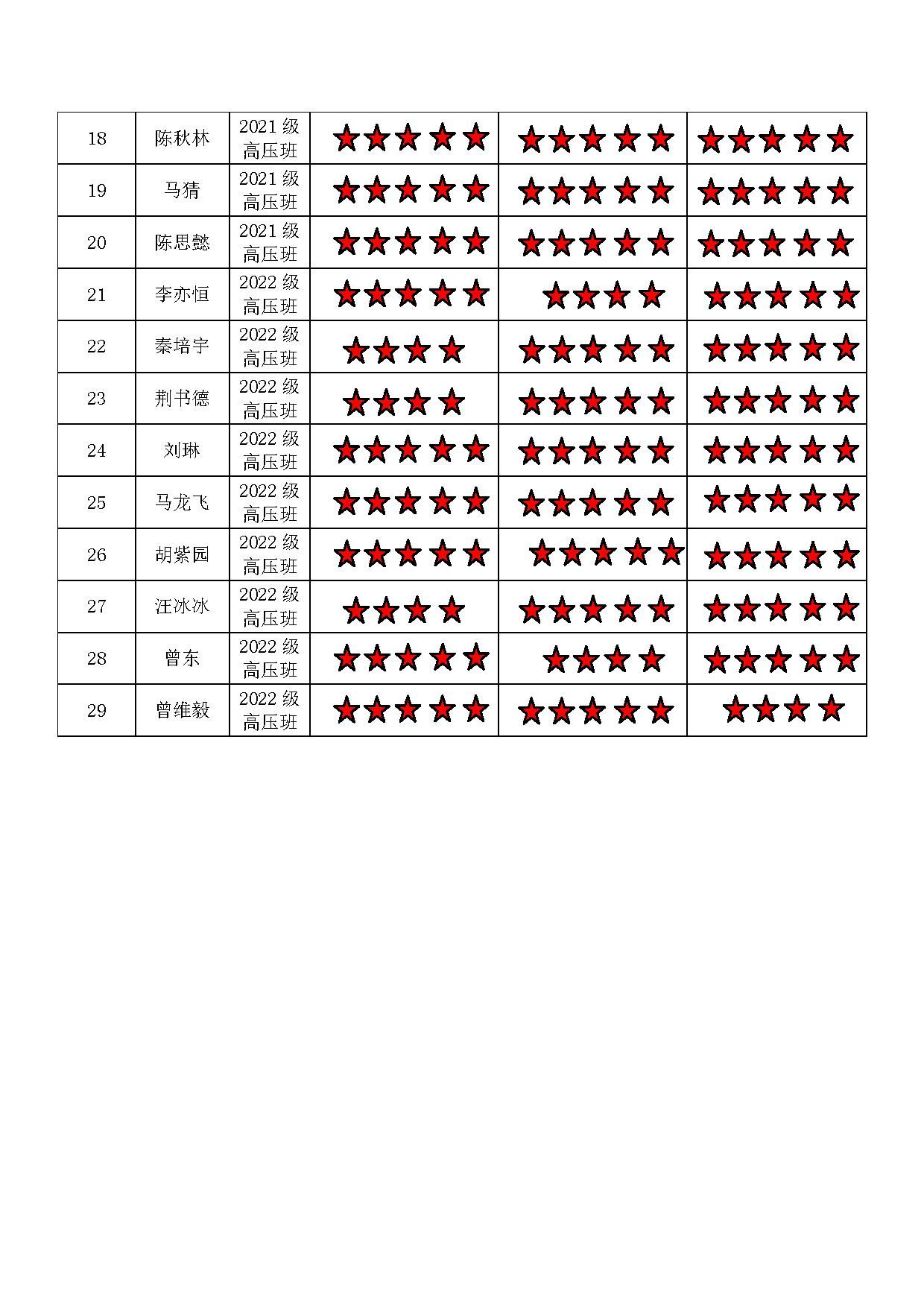黄色动漫 高压四支部 2022-2023学年第二学期“五星”评价结果