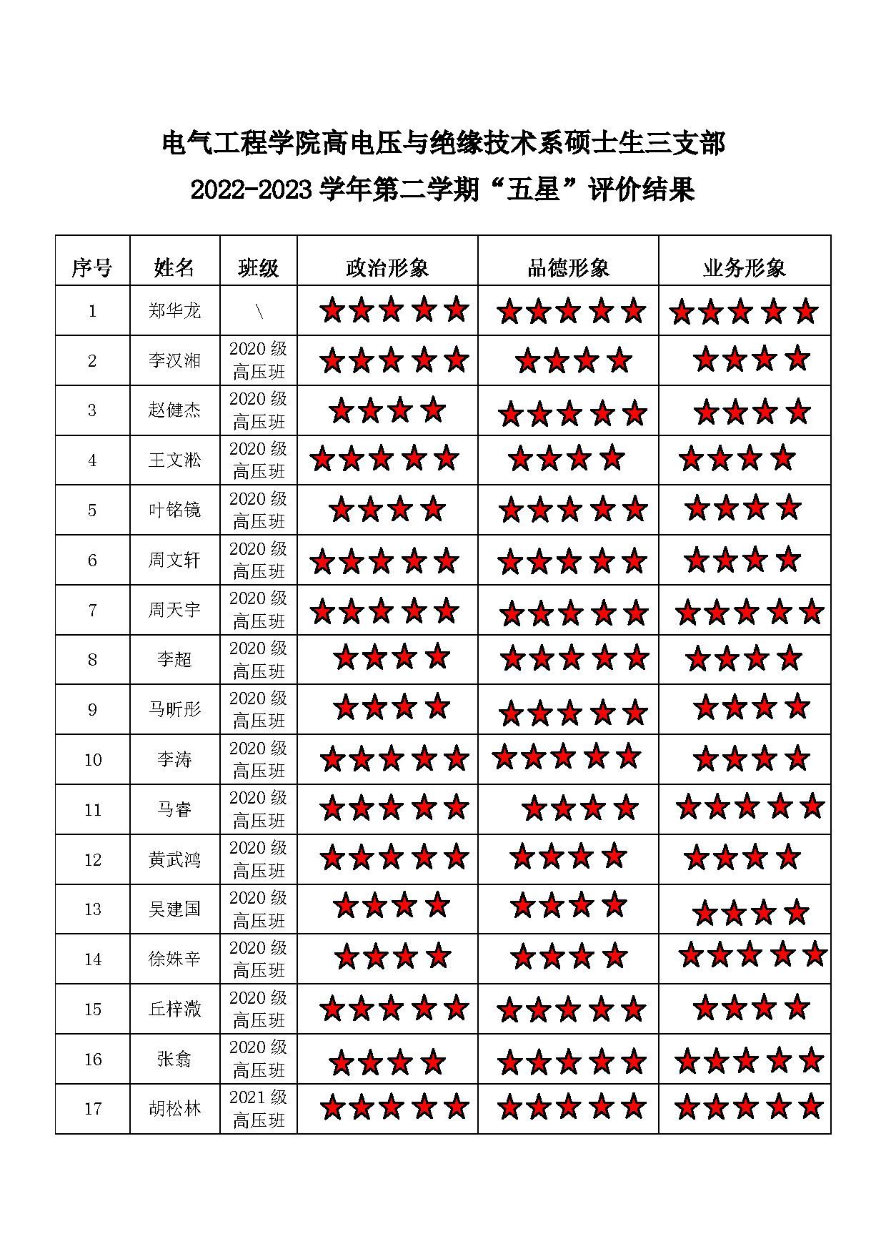 黄色动漫 高压二支部 2022-2023学年第二学期“五星”评价结果