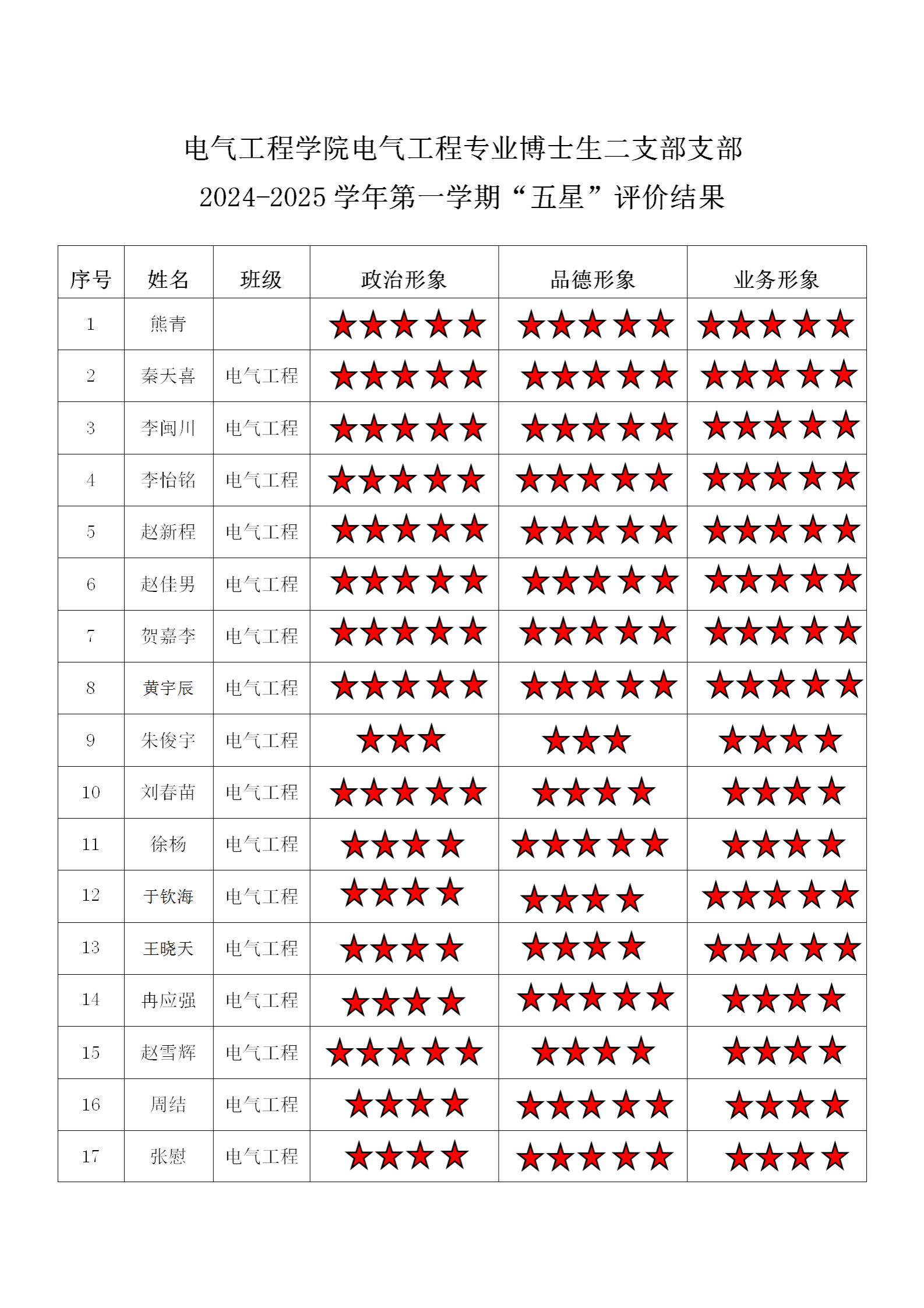 黄色动漫 博士二支部 2024-2025学年第二学期“五星”评价结果