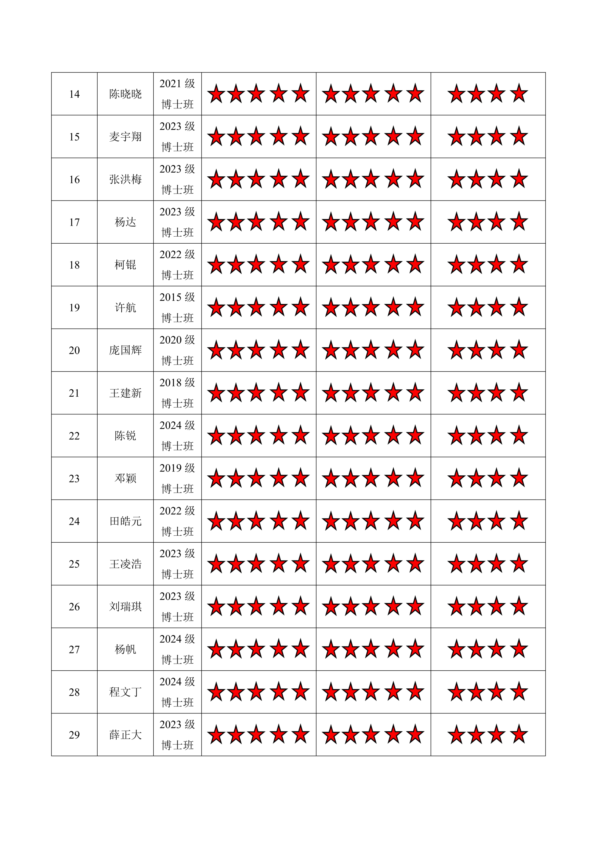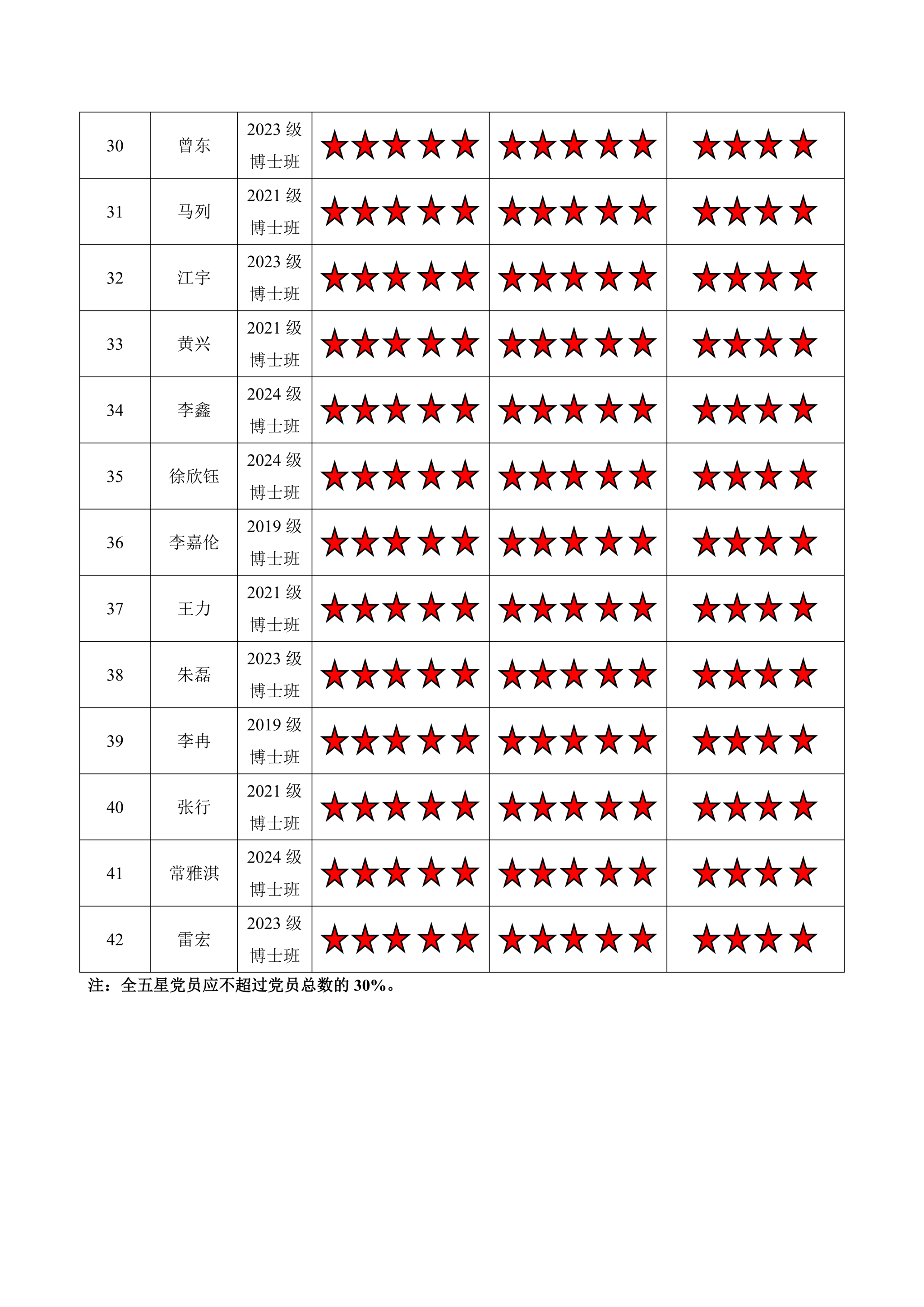 黄色动漫 博士三支部 2024-2025学年第二学期“五星”评价结果