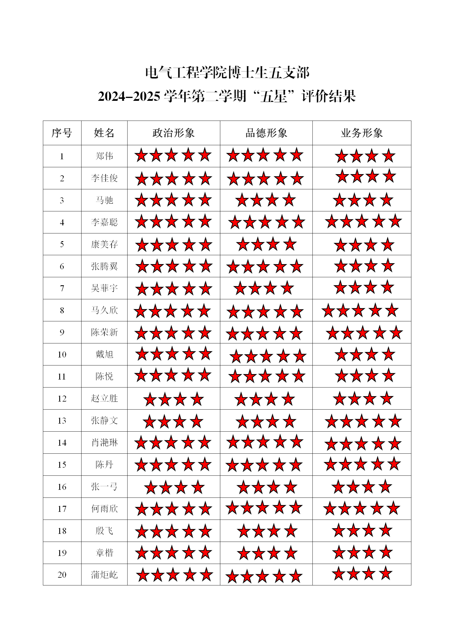 黄色动漫 博士五支部 2024-2025学年第二学期“五星”评价结果