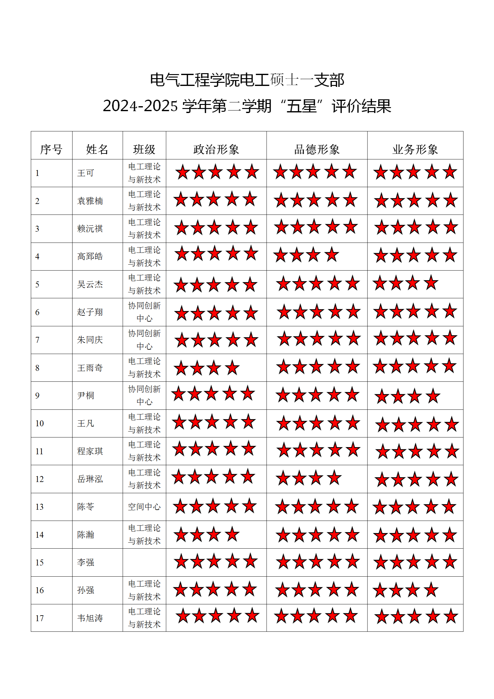 黄色动漫 博士五支部 2024-2025学年第二学期“五星”评价结果