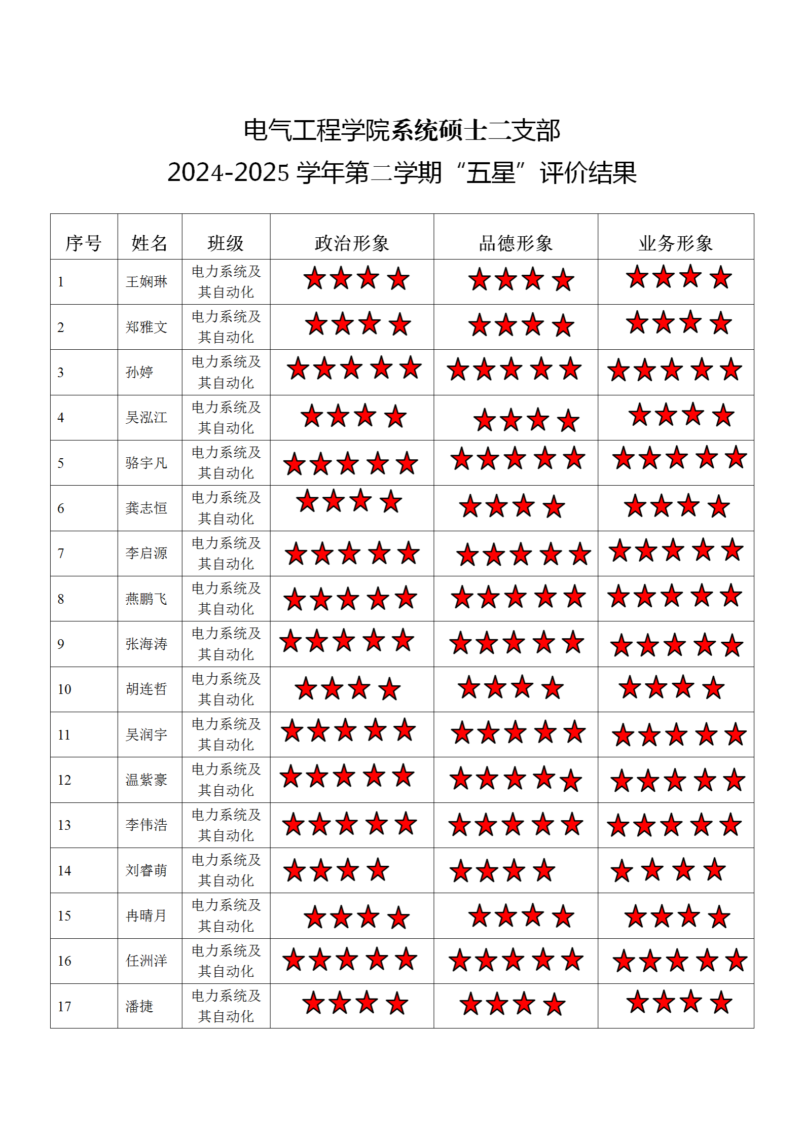 黄色动漫 系统二支部 2024-2025学年第二学期“五星”评价结果