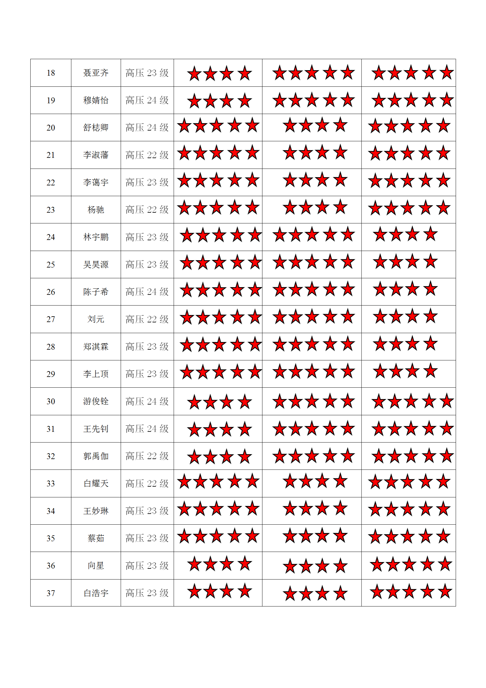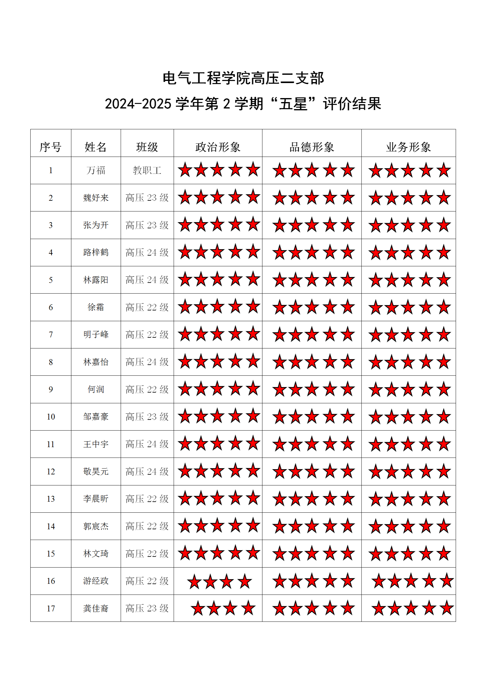 黄色动漫 高压二支部 2024-2025学年第二学期“五星”评价结果