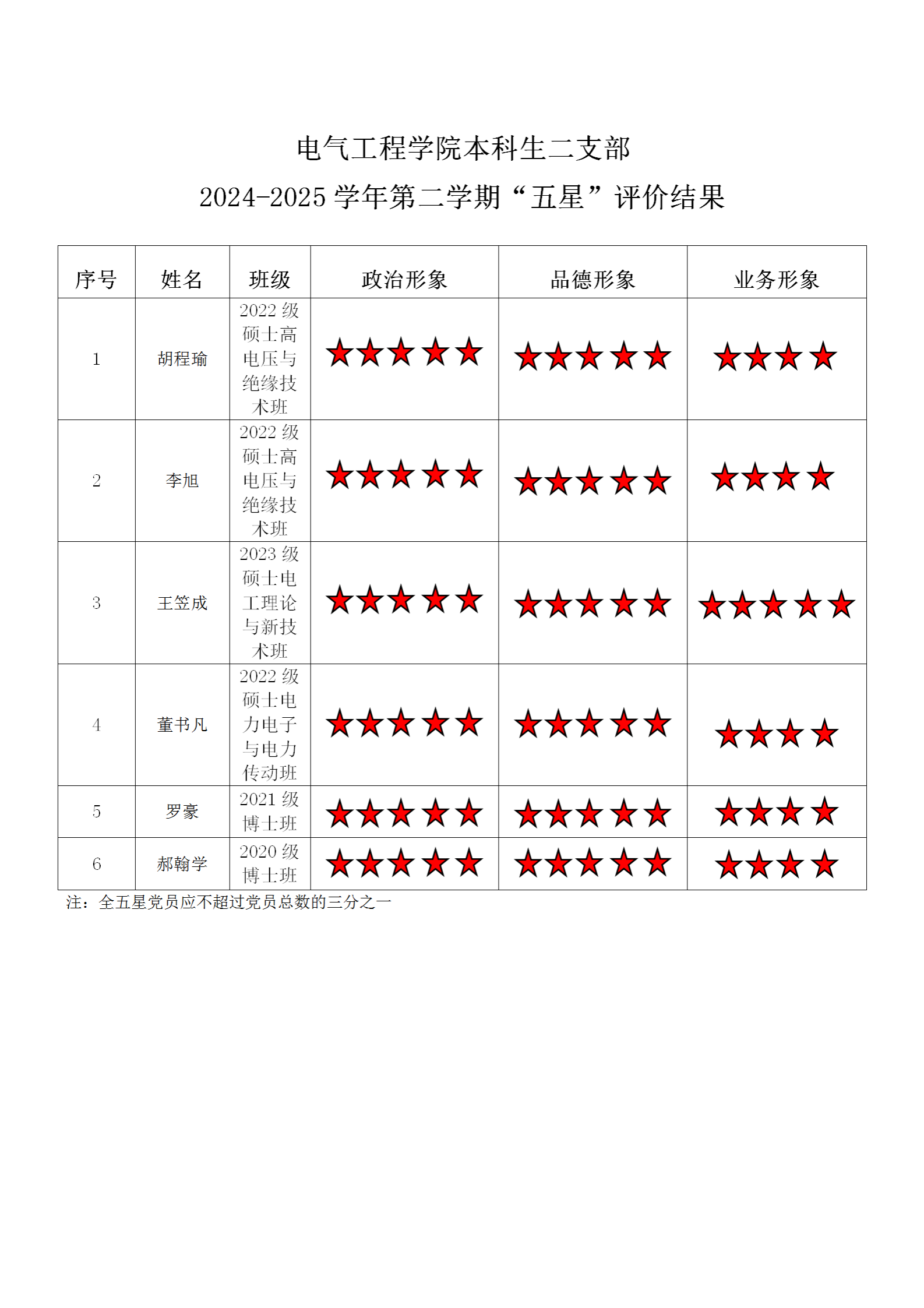 黄色动漫 建电支部 2024-2025学年第二学期“五星”评价结果