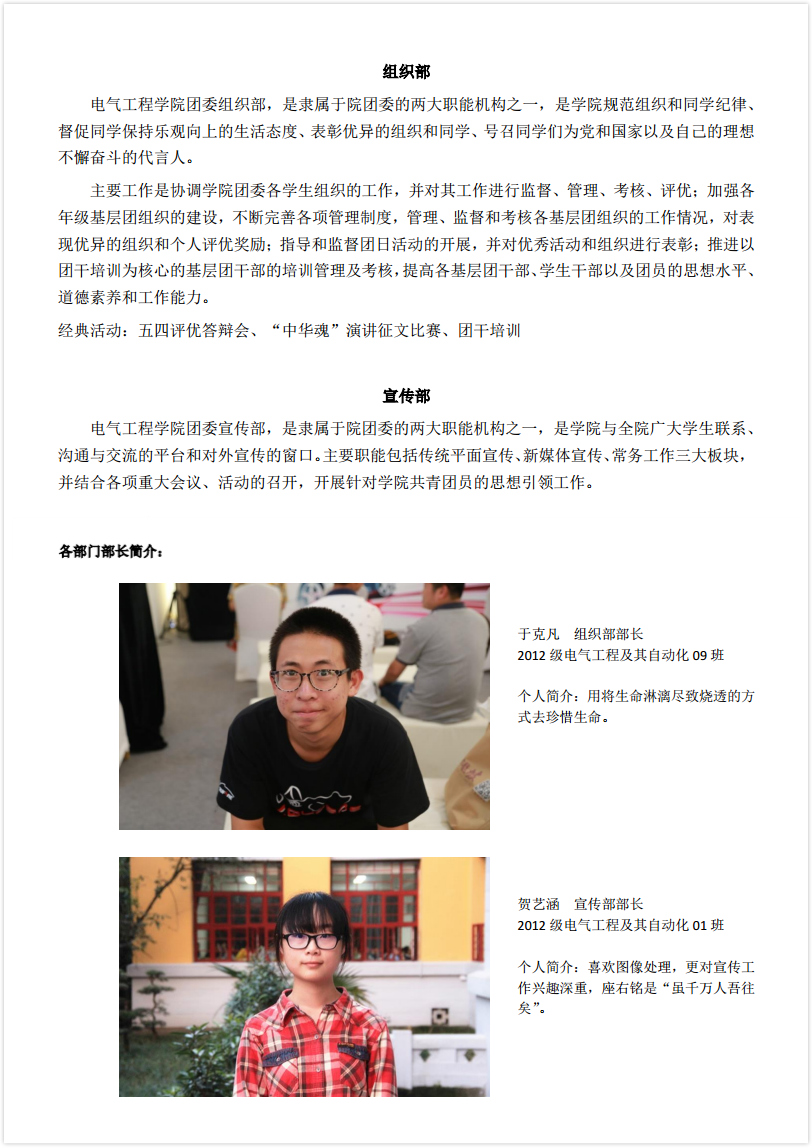 组织部部长:于克凡 宣传部部长:贺艺涵