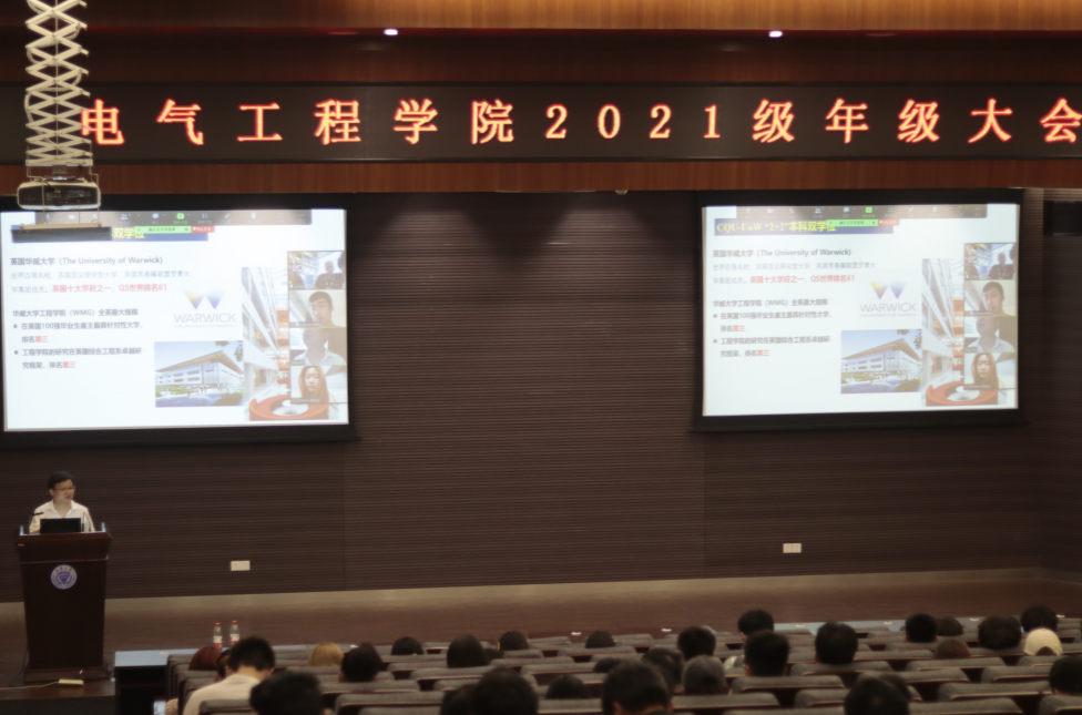 2021级年级大会于虎溪校区顺利召开。学院副院长余年、学办主任兼2021级辅导员罗敏及2021级本科生参加了此次会议。本次会议有幸连线中英碳化硅联合实验室中方负责人,英国华威大学及黄色动漫