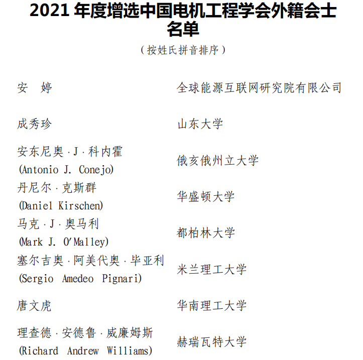 会士是会员在学会的最高学术荣誉。为表彰在电机工程科学技术领域有重大贡献、成绩卓著的专家学者,自2011年起,学会开展了会士遴选工作,现有148人当选会士。为吸纳和表彰在电机工程科学技术领域作出卓越成就的知华友华外籍专家,自2018年起,学会开展了外籍会士遴选工作,现有30人当选外籍会士。