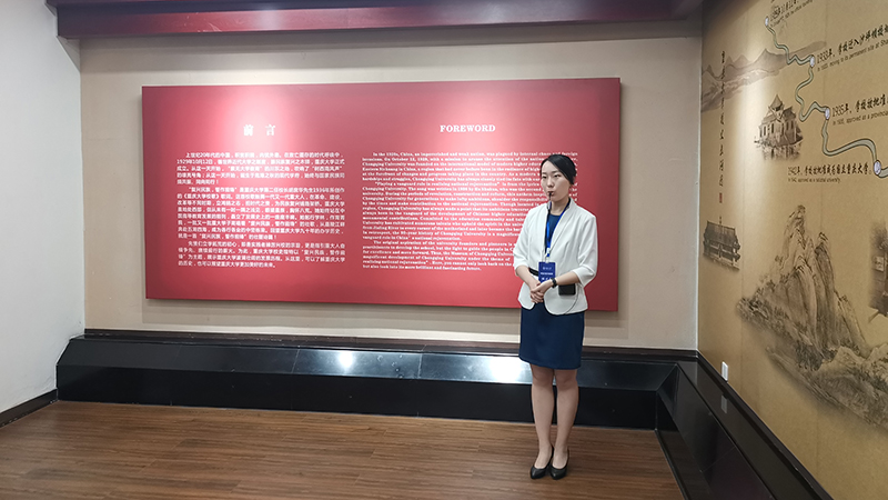 讲解员以重大建校的故事展开。其中,作为重大1929年建校的第一任校长,刘湘先生负芒披苇,于动荡的年代里带领重大师生和全国人民一同走上了抗日救亡的“战斗”之旅。直到新中国成立前的20年,重大人在战乱中的浴血与奉献响遏行云,鼓舞着西南地区和全国人民奋起反抗,保家卫国。