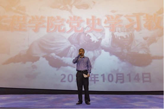 学院党委书记谢开贵在活动开始前讲话,他表示,今天是重阳佳节,学院邀请了离退休教师同学院师生一同观影《长津湖》,感谢他们为学院和学校发展做出的贡献。我们现在的和平生活是无数革命先烈浴血奋战换来的,电气学院的发展也离不开老教师们的辛苦耕耘。不忘初心方得始终,电气学院师生要在缅怀先烈中承续奋斗之志,为国家、为党、为高等教育事业共同努力奋斗终身。