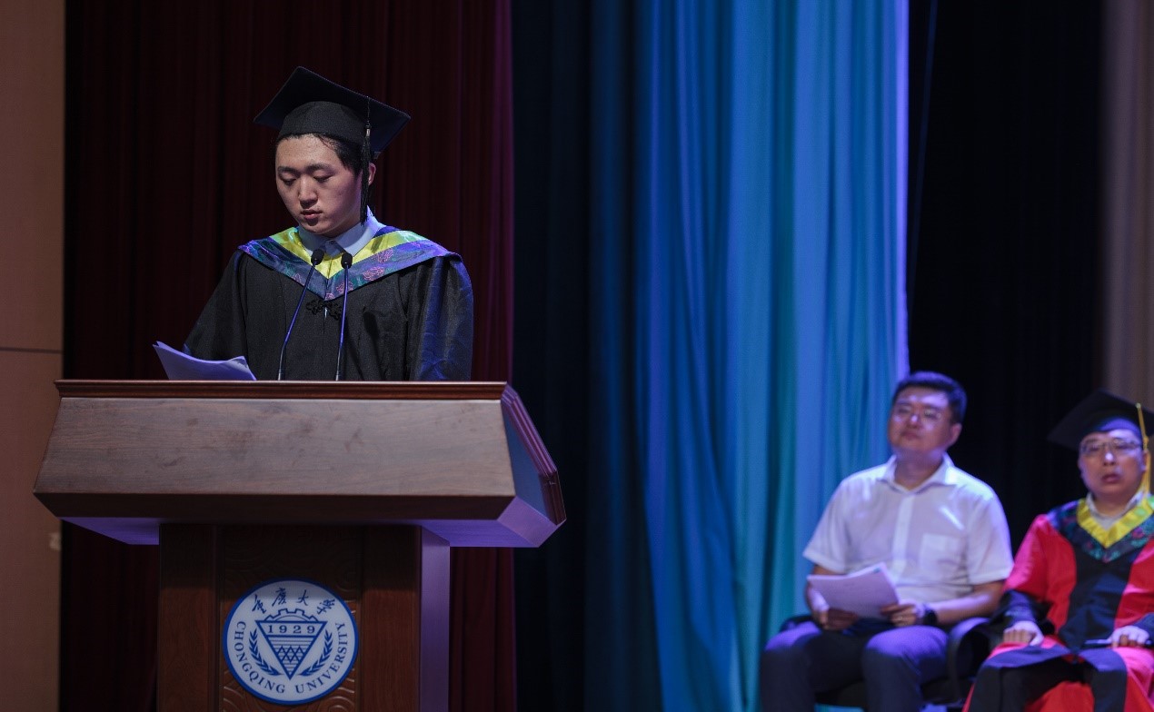 2017级本科毕业生关国辉同学作为学生代表发言。他感慨从大一到大四的的点滴回忆都历历在目,仿佛昨日重现,老师们的悉心教导,学院的辛勤培养都让人无法忘怀。他代表全体同学向学院、老师们表达感谢,并表示,将始终坚守初心,勇担使命,在科研领域精耕细作,以优异的成绩报答学校、报效祖国。