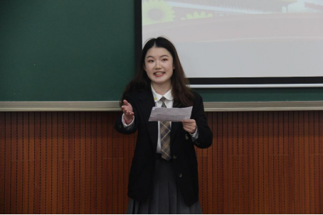 比赛介绍之后,罗敏老师做点评。罗敏老师指出演讲时演讲者的气势应不断推进,逐渐达到顶峰,让所有的听众热血沸腾,从演讲中获取收获及感悟。在中国共产党迎来百年华诞之际,我们应继承革命先烈的遗志,担当起祖国的大任,从平凡的岗位中看到党的伟大以及祖国的强盛,并且在风云变幻的国际形势中承担责任。