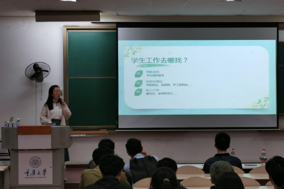 团委在虎溪校区综合楼121举办新老生交流分享会,电气学院团委书记喻惠,本科20级150名学生参加了本次交流分享会。交流会邀请到本科2017级庄伟建、张媛、贺一杰做经验分享。