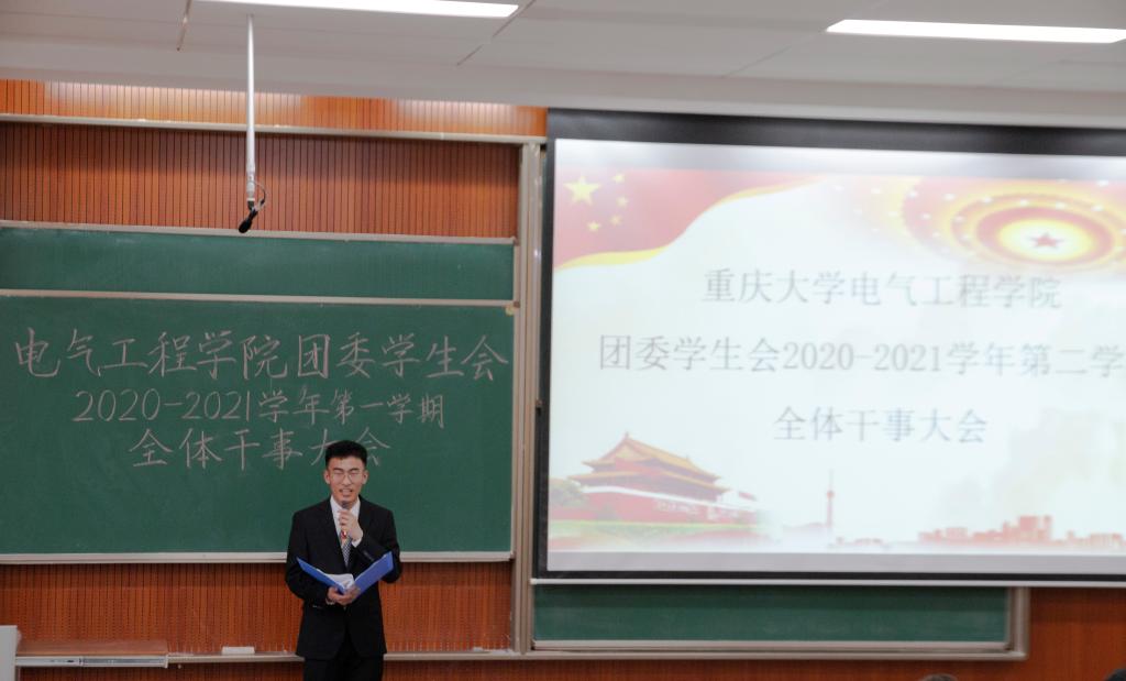 团委学生会在虎溪校区D1134召开2020-2021学年第二学期全体干事大会。黄色动漫