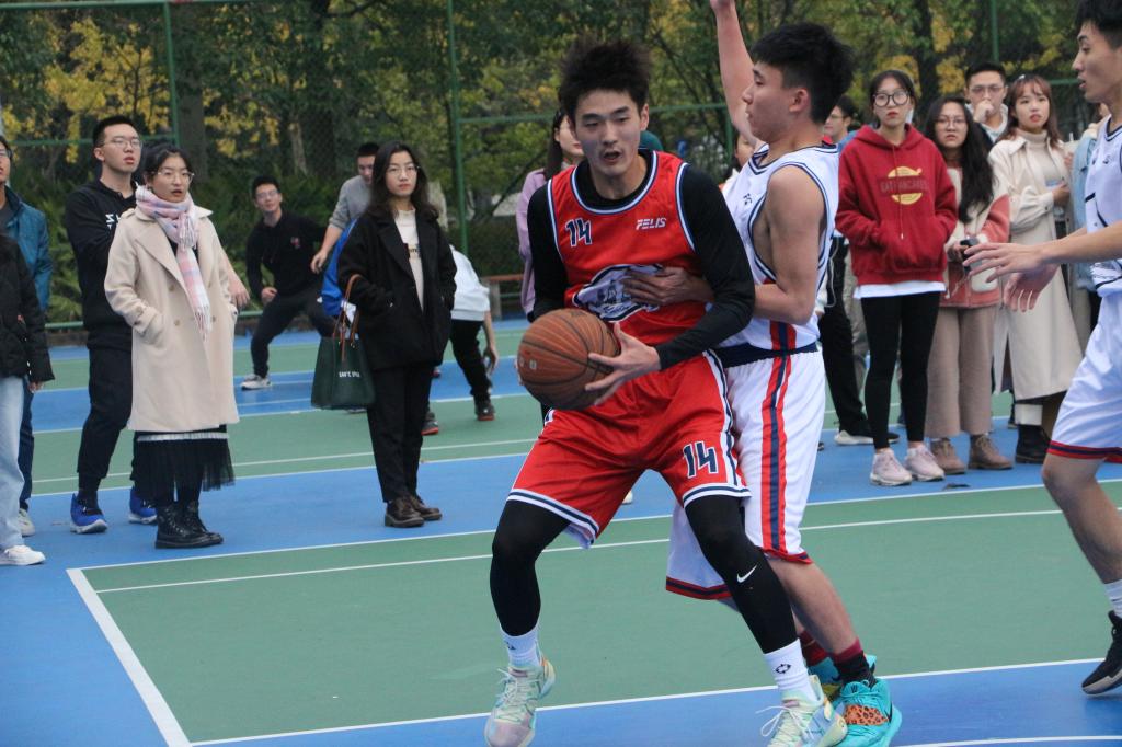 11月26日16:30,校园篮球赛决赛第一场在虎溪校区梅园篮球场举行。临“篮”不慑,电气男篮在首次交锋中表现出色。第8分钟,队长李立志连过三人,以一记漂亮的上篮赢得全场欢呼;第23分钟,23号曾正一晃开防守,回转跳投又下一城;第27分钟,21号成诺以一记三分打出了电气学院的气势。最终比分47:84。