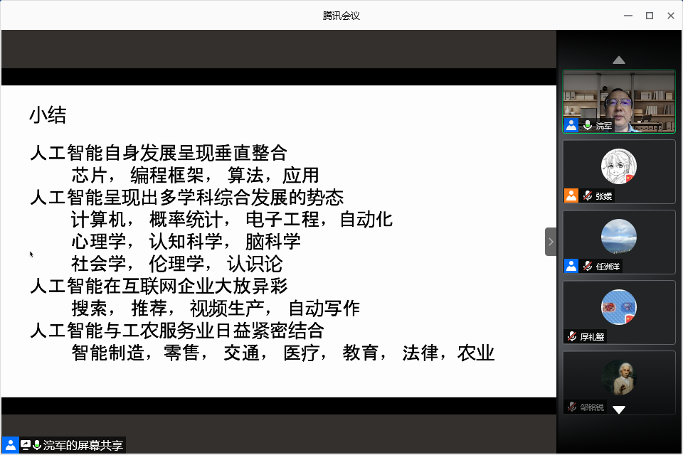在互动环节,浣军教授和大家交流了人工智能及深度学习目前存在的瓶颈、与电气工程领域的结合以及数据安全性等问题,并鼓励同学们开拓创新,进一步推动人工智能技术的应用,促进电气工程领域交叉学科的发展。