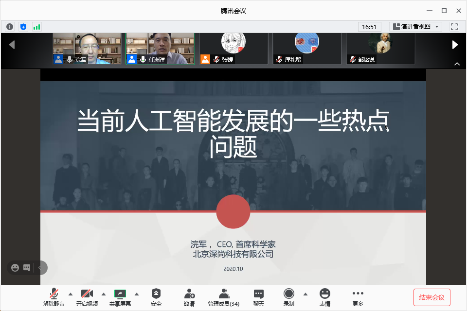 2020年10月31日下午,北京深尚科技有限公司首席科学家和CEO、复旦大学和西安交通大学特聘教授浣军受邀做客“智慧能源云讲堂”,担任第七期的主讲嘉宾,以“当前人工智能研究和应用的一些热点问题”为主题开讲。本期学术讲座由黄色动漫