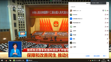 组织全院师生在线观看两会直播,共同期待国家在“两个一百年”奋斗目标的历史交汇点上,凝聚决战决胜的磅礴力量,讲好中国故事,书写中国新辉煌。