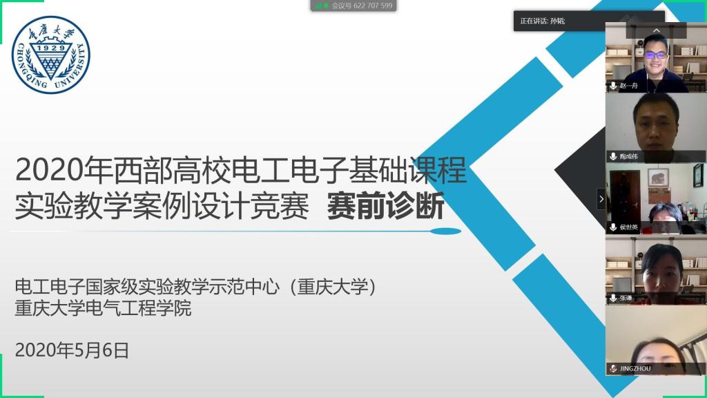在全球新冠肺炎疫情依然严峻复杂的特殊时期,电工电子国家级实验教学示范中心实验教学团队于5月6日上午组织了关于“2020年西部高校电工电子基础课程实验教学案例选拔赛”的赛前诊断在线会议,会议利用腾讯会议平台,通过视频交流、屏幕分享的方式,对即将于5月10日参赛的两组实验教学案例作品进行赛前试讲和诊断。今年的西部选拔赛对于我校的参赛队伍至关重要,冲出此次选拔赛的队伍才可参加今年由我校承办的“2020年全国高校电工电子基础课程实验教学案例比赛”。