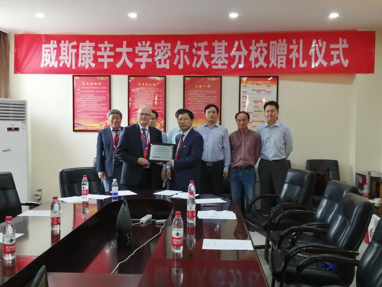 活动末尾,出席活动的嘉宾和在场师生合影留念,至此,威斯康辛大学密尔沃基分校赠礼仪式圆满结束。
