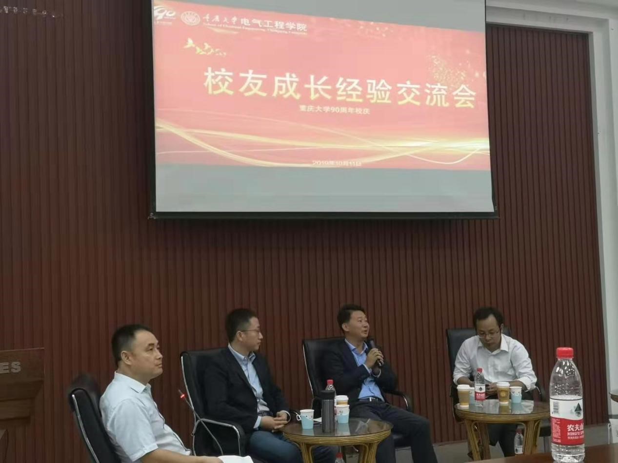A区六教117会议室隆重举行。受邀出席此次交流经验会的校友有:杭州格创新能源有限公司董事长董建洋、中国中治美丽乡村与智慧城市技术研究院副院长石小波、中国电力科学研究院高压所直流电磁室副主任刘元庆、南京国电南自自动化有限公司总经理余波。活动由黄色动漫