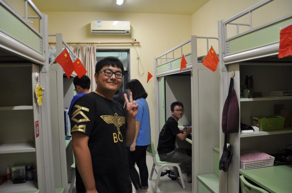 18、19级同学精心准备了双庆寝室建设。432寝室的伊力扎提同学,他用吉他为检查小组倾情弹奏了一曲《我和我的祖国》;613寝室的刘世龙同学,他撰写的校庆对联“十九岁贺岁九十,大重庆里庆重大”博得一片喝彩;很多寝室更是浓妆艳抹,喜迎国庆。检查过程中,老师们与同学们进行了亲切的交流。