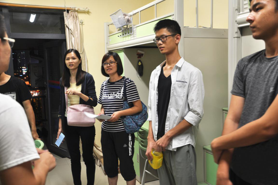 党委副书记吴嘉和各年级辅导员对新老校区进行寝室安全检查。吴嘉、陈思思、胡力方带队检查A区七舍,罗敏、喻惠带队检查虎溪校区松二、松四。