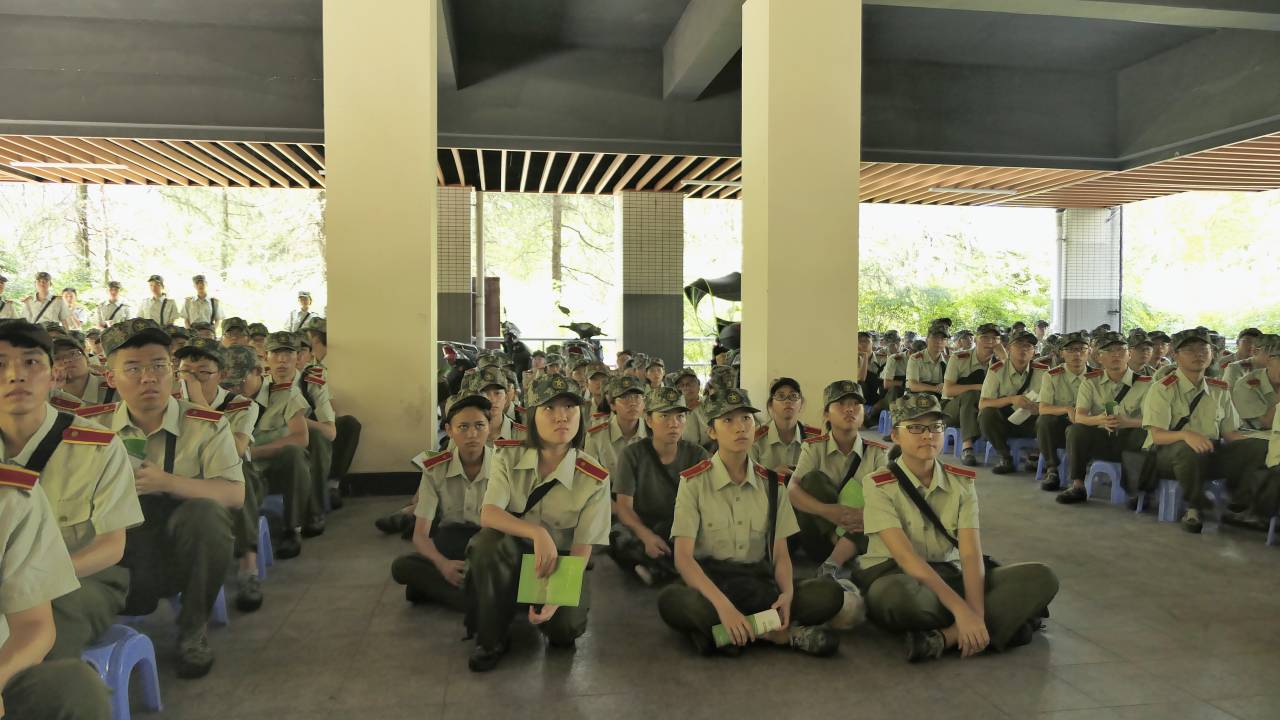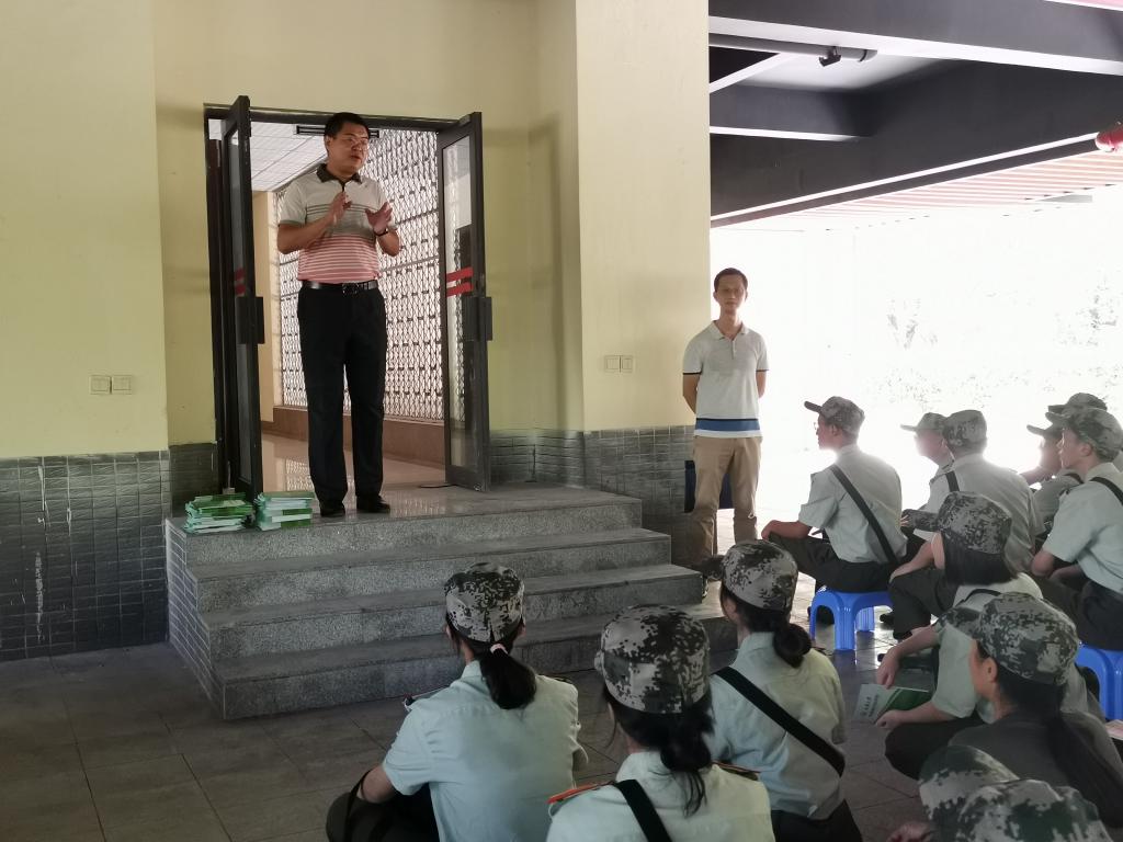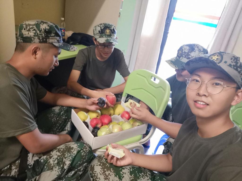 2019级辅导员罗敏等老师在松园二栋楼底架空层看望并慰问了正在军训的黄色动漫