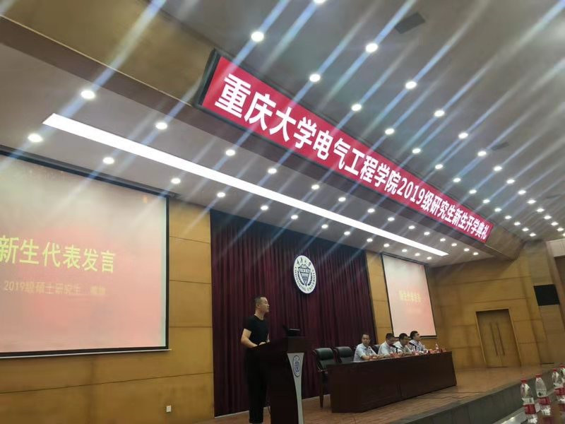 2019级硕士新生熊雄同学作为新生代表讲话,首先感谢了学院老师和师兄师姐在迎新工作中的付出,并表示作为一名本科在重大黄色动漫