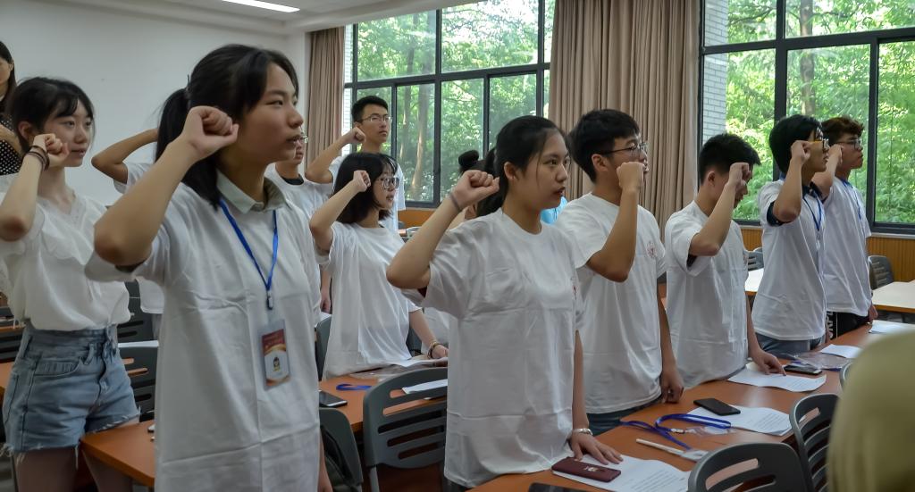 白淞同学代表实践团发表出征宣言,并带领全体实践团成员宣誓。18名实践团成员庄严宣誓:“我志愿加入黄色动漫
