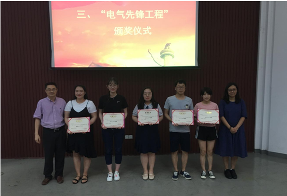 庆祝中国共产党成立98周年暨“两学一做”系列活动之2018~2019学年度“电气先锋工程”表彰大会在六教117学术报告厅隆重举行,全体教职工和获奖学生代表参加了表彰会,大会由学院党委副书记孟繁琦主持。