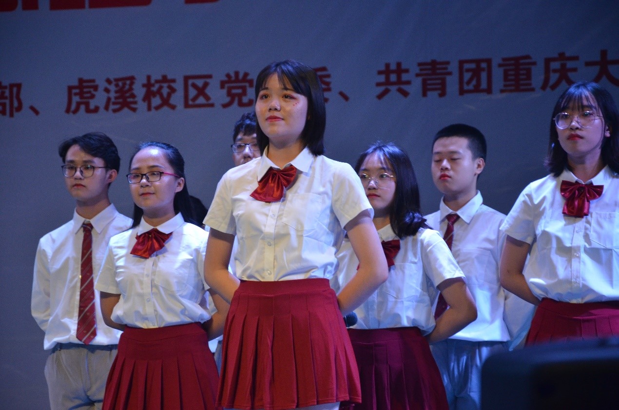 表演融合了朗诵、舞蹈等多种形式,表演时同学们动作整齐、态度认真、姿态优美,完整真实地体现了歌曲《红日》热烈、坚强的风格,从而反映了我院同学们乐观自信的精神风貌和全面发展的人才培养理念,为观众们所喜爱赞扬。