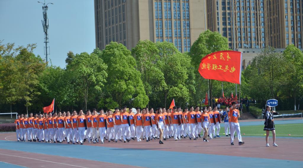 虎溪校区虎溪田径场举行。明媚的阳光下,重大的学子上演的花球操、旗操、方阵表演等带给了我们一场全新的视觉盛宴,他们的创意也令人惊叹叫绝。其中,电气学子朝气蓬勃的面庞也令人印象深刻:他们统一身着橙衣,为操场添了一抹亮色;他们步伐整齐划一,口号铿锵有力;他们高举着卫星,配合着闪亮的银板,模拟“空间太阳能发电站”,表达了电气学院对祖国早日建成第一座太阳发电站的美好祝愿,以及电气学子为扎实学业,誓为祖国科技事业尽心献力的决心,而后他们翻过银板,显现出一片浩瀚星空,其中拼成的“90”字样更是抒发了电气学院全体师生对母校九十周年校庆的祝福。看台上的观众掌声雷动,反响热烈。