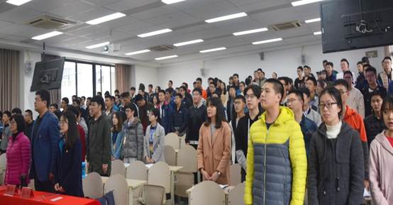 下午13时整,大会正式召开。会议伊始,主持人清点了到会学生代表人数。会议应到148人,实到145人,符合学生代表大会召开规定。紧接着主持人宣读会议要求和注意事项,在国歌声中,大会正式开幕。