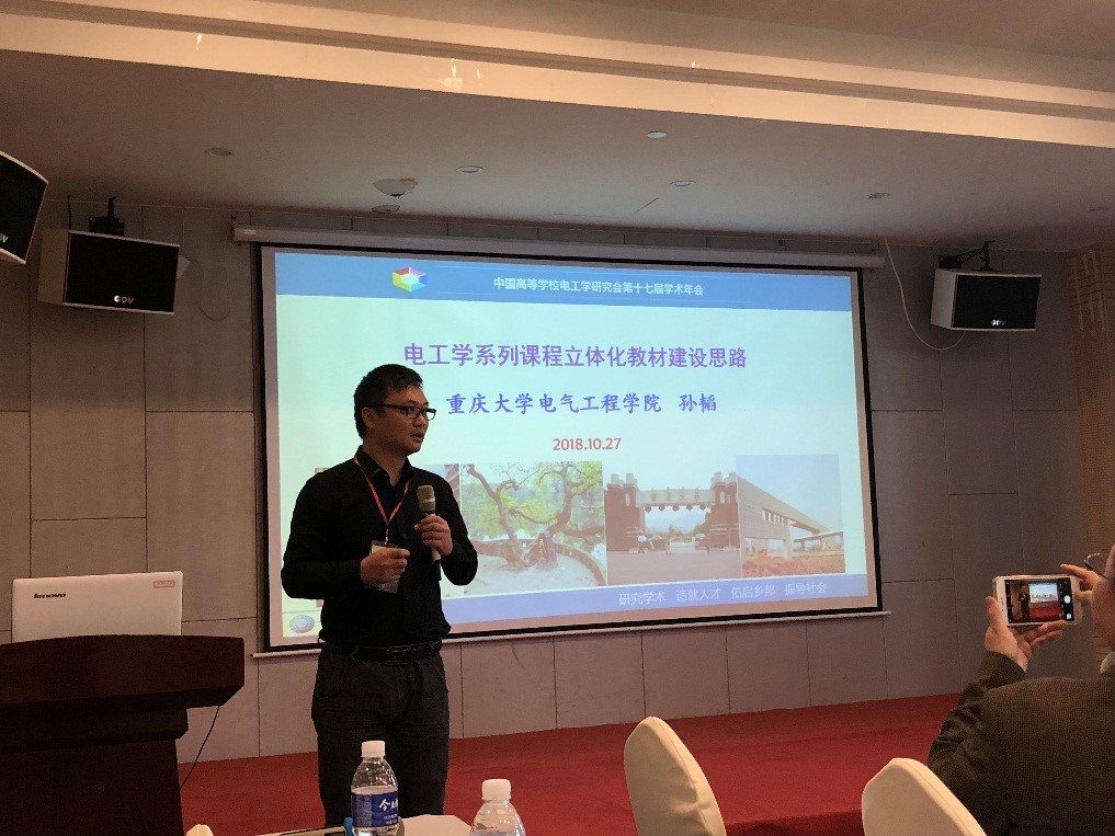 我院孙韬老师在教材建设分会场作了题为“电工学系列课程立体化教材建设思路”的报告,不仅向参会老师介绍了我院电工学系列课程的建设、国家级规划教材的撰写与出版、新型态教材和数字教材的建设与出版情况,还与参会老师们分享了我院电工学课程的在线开放课程建设及上线情况,得到了参会老师和高等教育出版社的关注和赞赏。