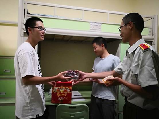 最后,中秋来临之际,学院考虑到这是新生们第一次远离家乡过中秋节,为缓解同学们的思乡之情,学院向新生们派发了月饼等慰问品,以表示学院对新生们的关切和照顾。同学们激动万分并十分感激,纷纷表示,一定谨遵李院长的教诲,在军训期间严于律己,恪守规矩,为自己大学第一课画上一个圆满的句号。慰问会在同学们热烈的掌声中顺利地结束了。