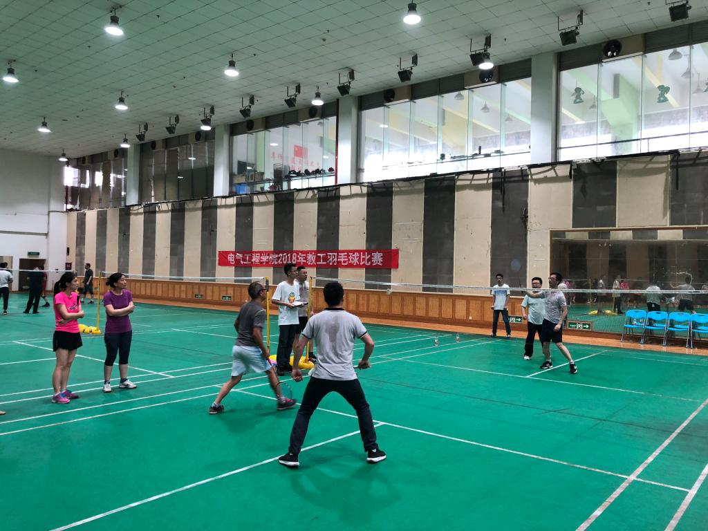 此次比赛设有男单、女单、男双、混双四个项目,来自电机与电器系、电力系统及其自动化系、高电压与绝缘技术系、电力电子与电力传动系、电工理论与新技术系、建筑电气与智能化系、学生工作办公室、院行政办公室等单位的40余名教师,组成的9支代表队同场竞技,为大家奉献了一场精彩的比赛。
