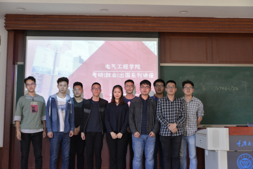 的邢来同学和考研到清华大学的邬超同学分别介绍了自己考研的经过,并指出对于电气学子来说数学和电路原理作为拉分科目,需要坚持不懈日复一日的学习。