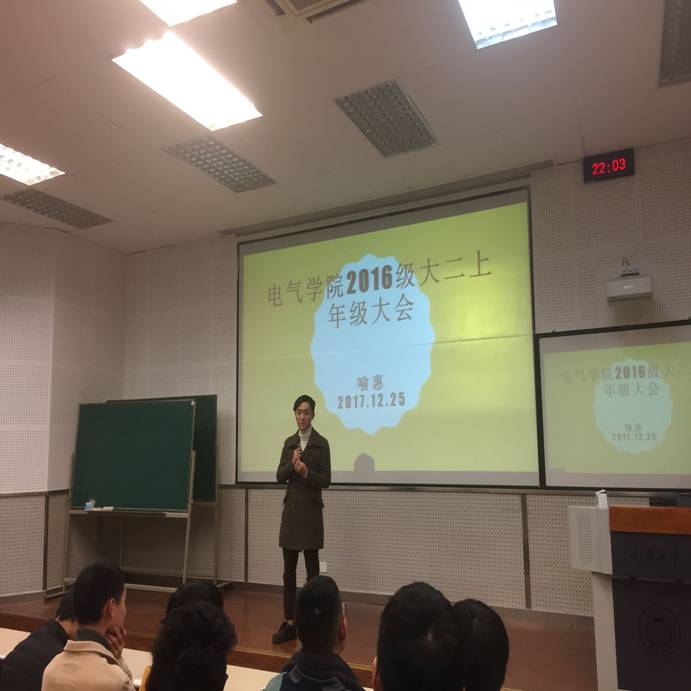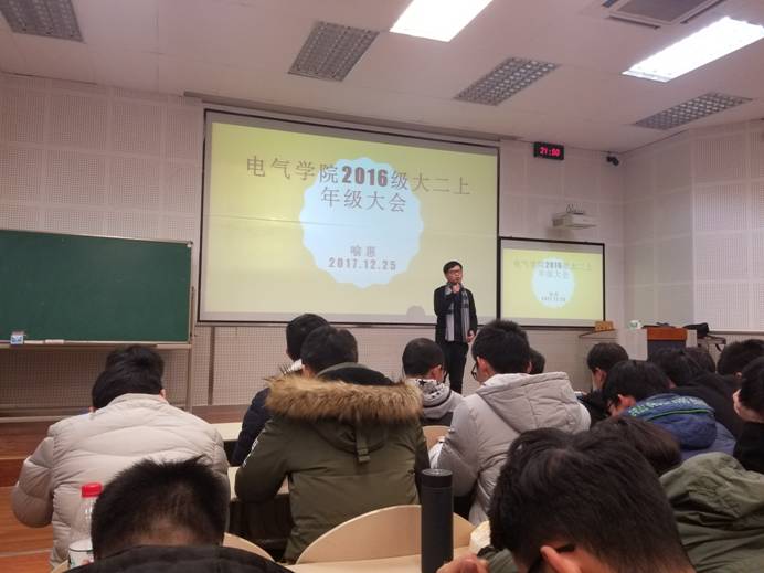 本次年级大会的顺利召开为本学期集体及个人的收获做了良好的总结,也为同学们以后的学习和工作指引了前进的方向。最后两位老师祝同学们元旦及寒假愉快,期末考试取得优异的成绩。年级大会结束之后两位辅导员还走访了学生宿舍,检查了学生宿舍的卫生、违章电器等情况。