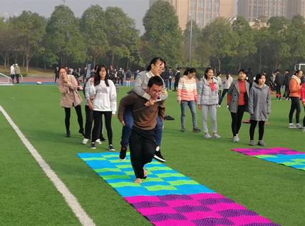 在“螃蟹背西瓜”的项目里,挂着红色号码牌的同学们来来回回,少有失误,手挽着手,虽惜败于对手,但我们仍然取得了不错的成绩。